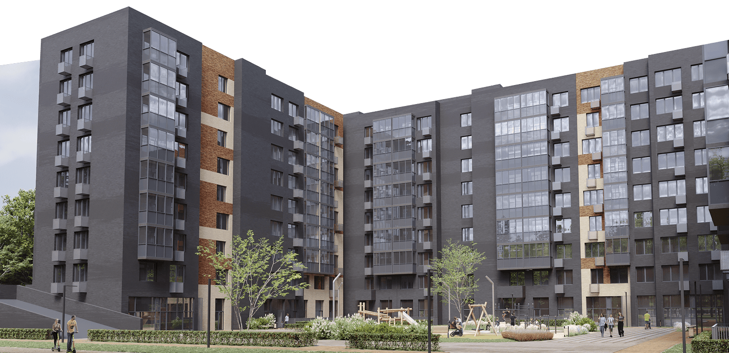 Фасады из клинкерного кирпича трех природных оттенков дополнены стеклянными плоскостями балконов.